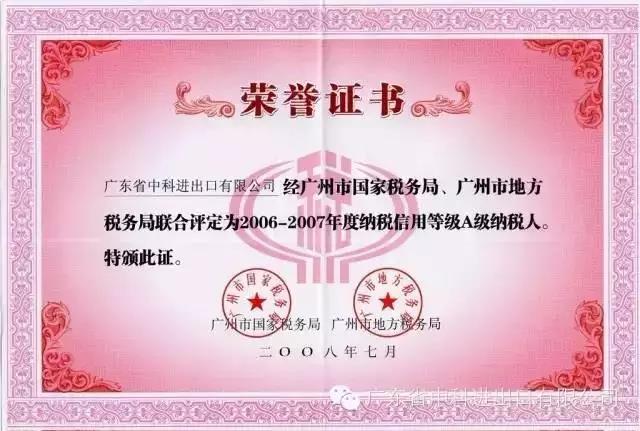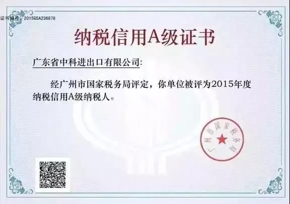 我司被評為2016年度納稅信用AAA級企業,是廣州市國家稅務局對我司的高度贊揚和認可。今后我司將在銀行、稅務、工商等部門享受特殊通道,能更便利快捷地辦理各項業務,為中科的客戶提供更高效、優質的服務。