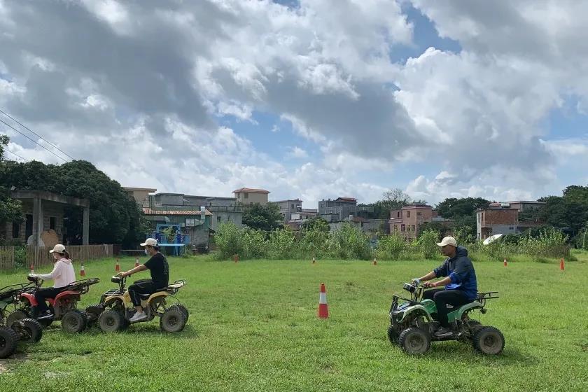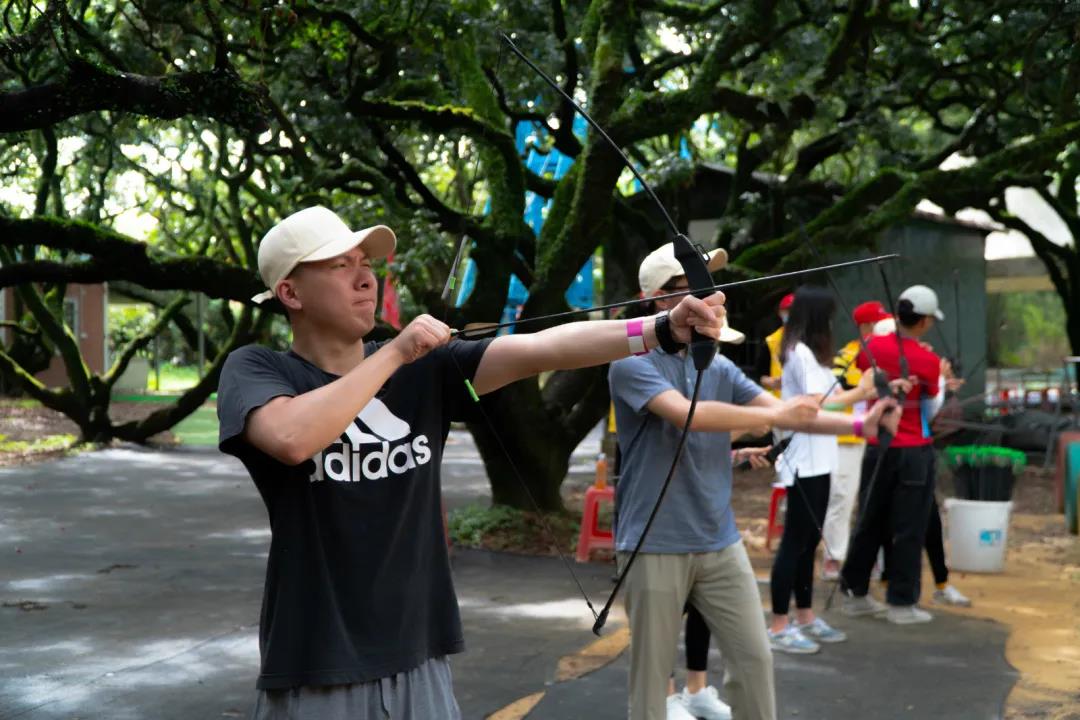 五個小組分別輪流體驗電動越野車和射箭項目,體驗完畢后隊伍之間進行了積分制的比賽。